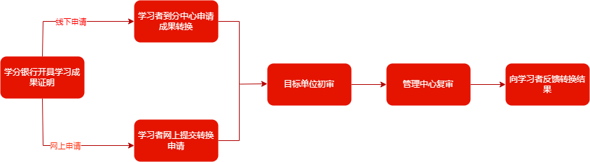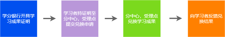 学习者持学分银行开具的学习成果证明,到分部、分中心等申请学分或证书等形式的学习成果转换,分中心按规定办理转换业务。